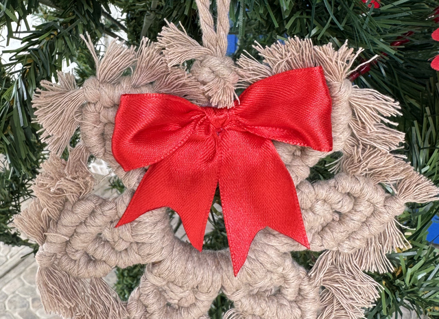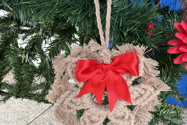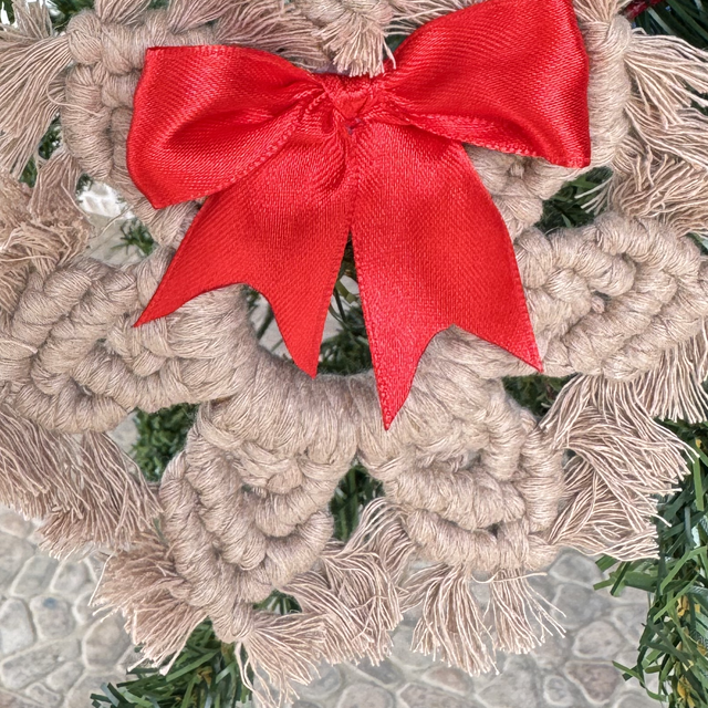 Un peu de douceur avec ce beige une étoile en macramé faite avec amour ❤️ avec sont petit nœud rouge